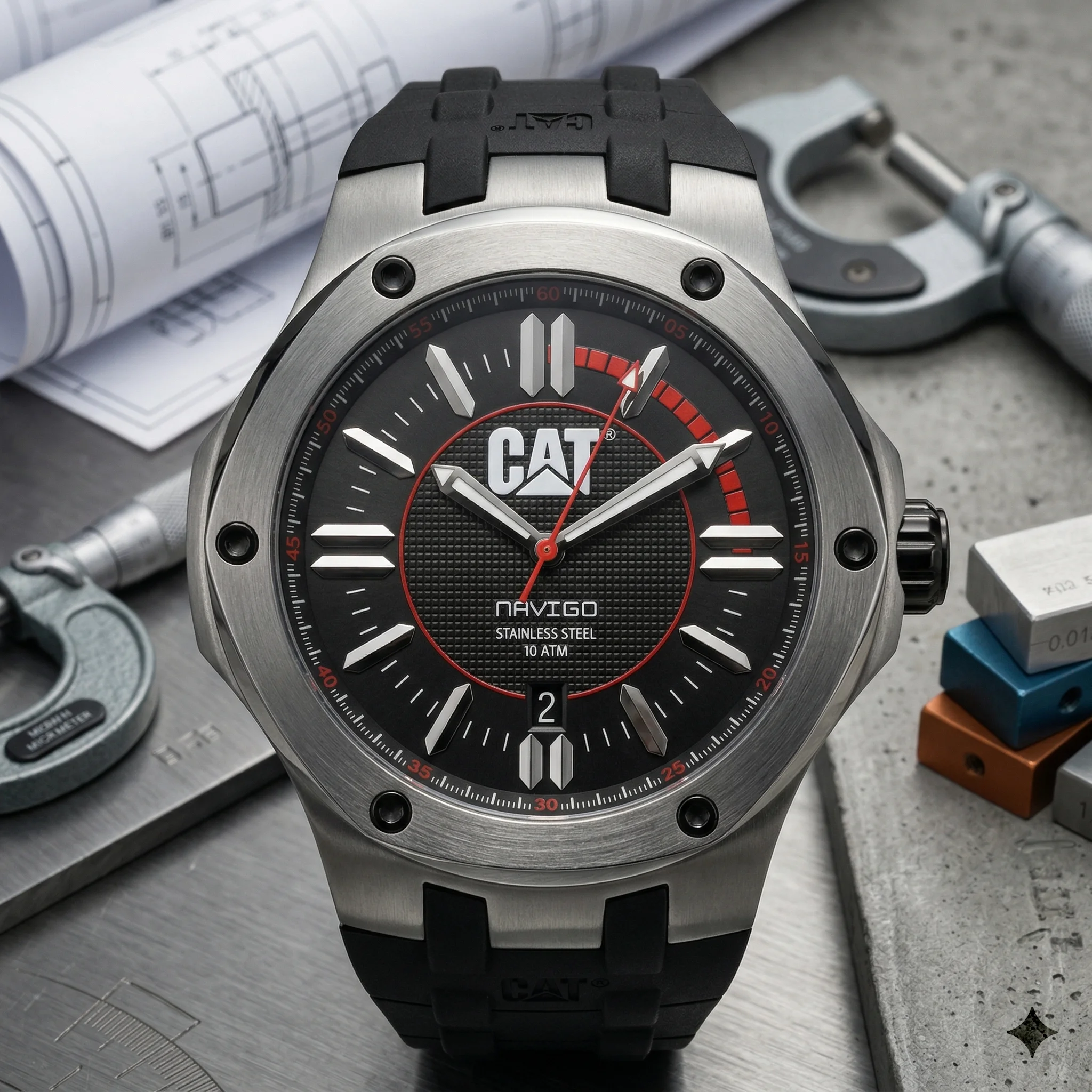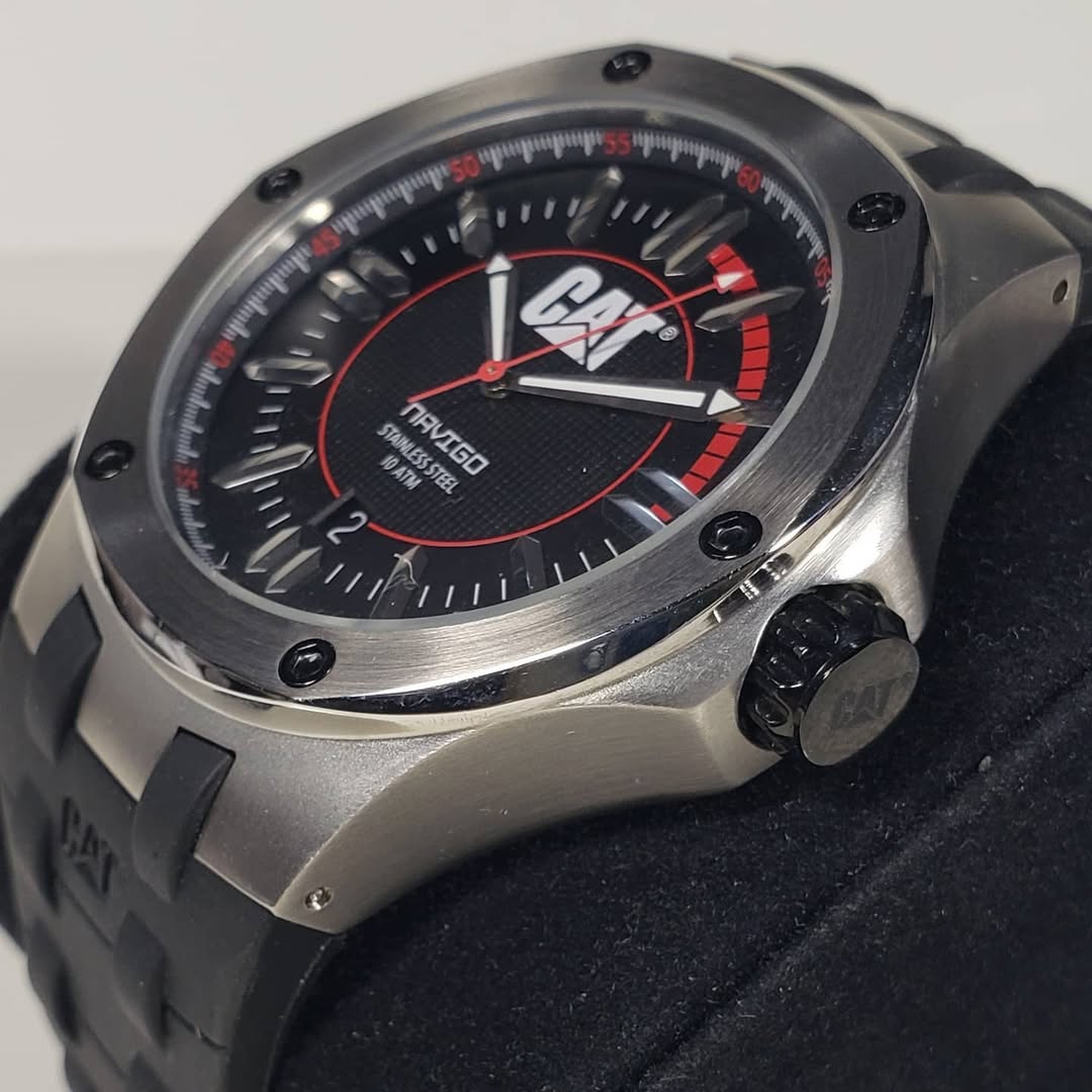 Diseño aerodinámico con armadura industrial. El CAT Caterpillar Navigo A1141-21128 10319 fusiona la precisión técnica de la línea Navigo con un estilo deportivo y contundente, ideal para quienes buscan máxima dureza sin perder la sofisticación.