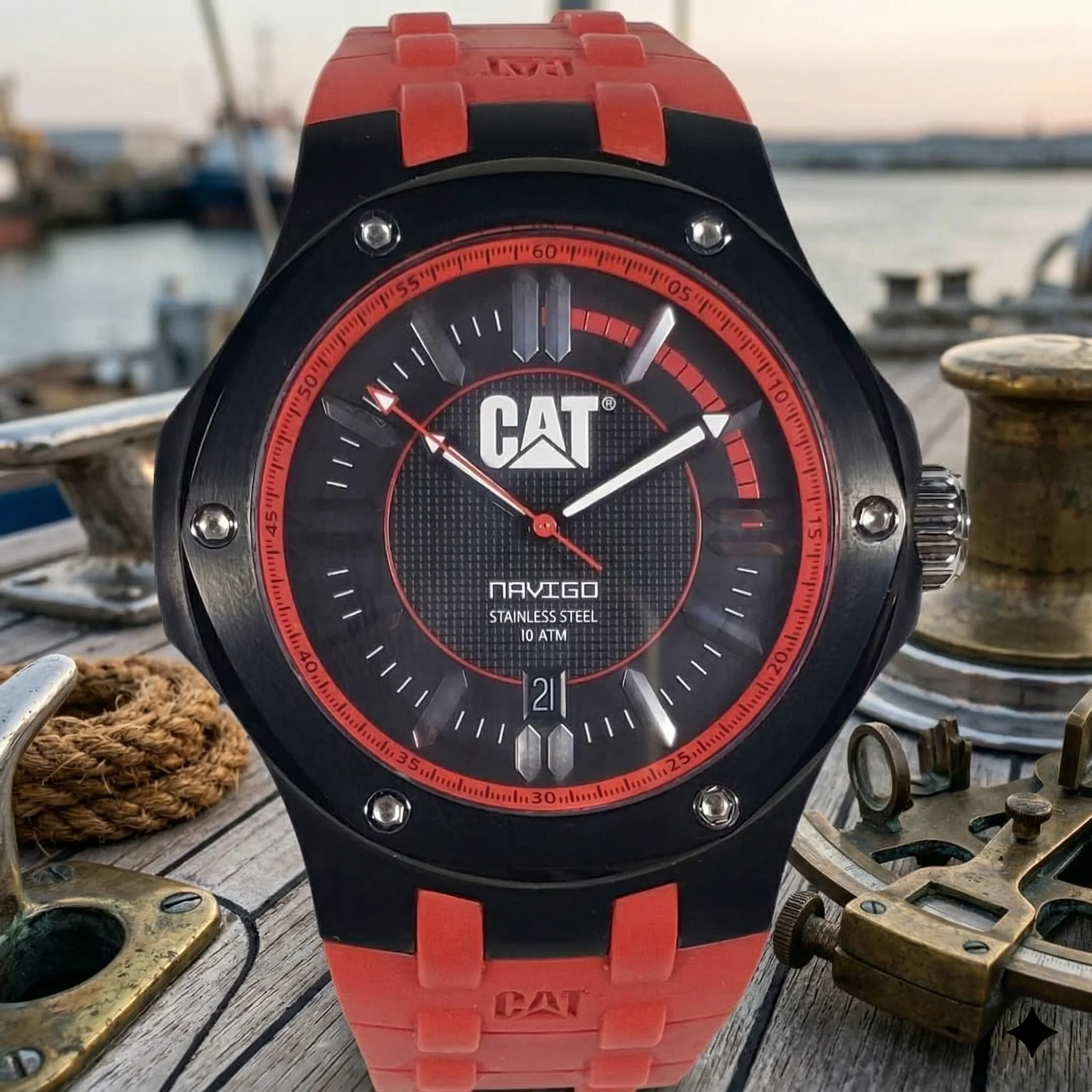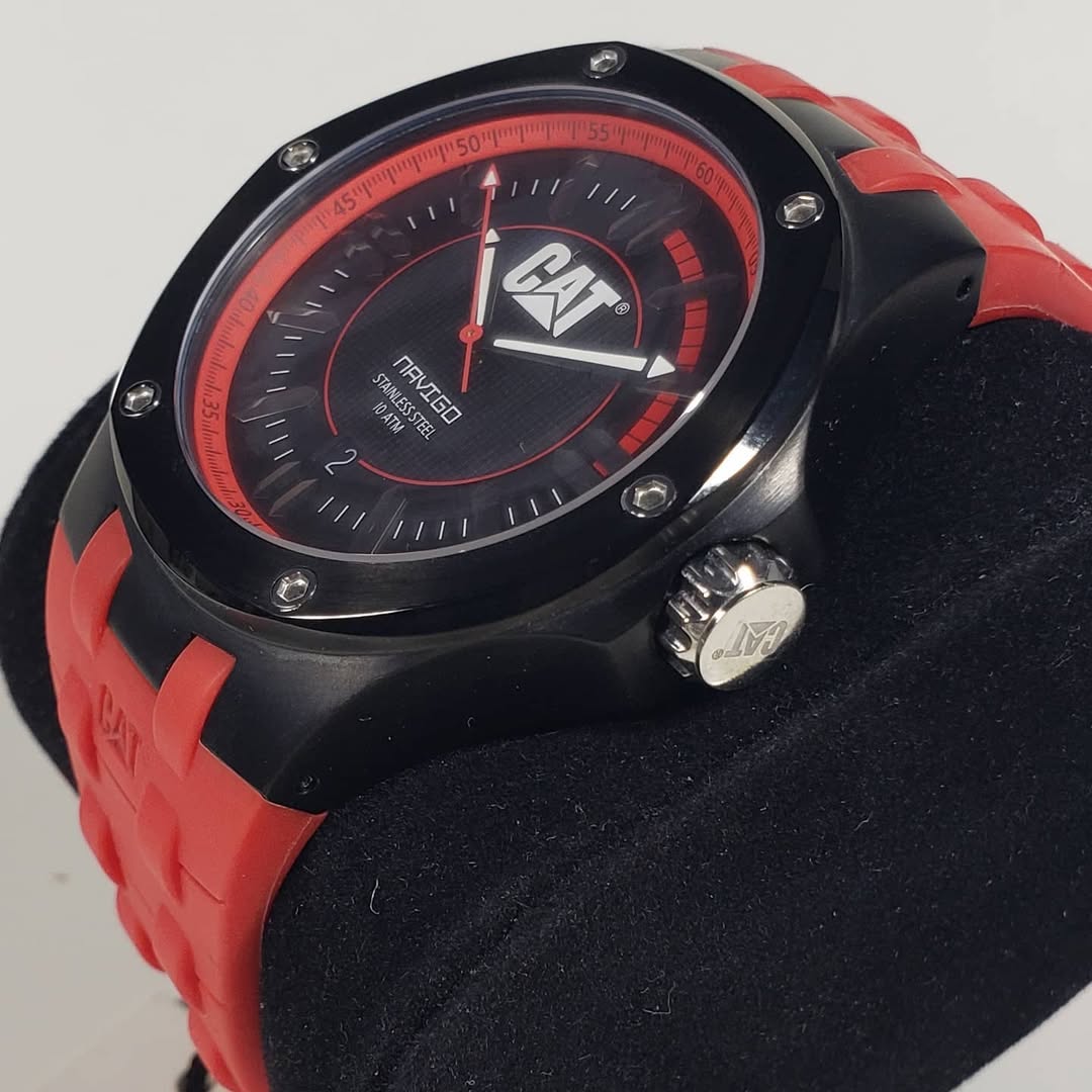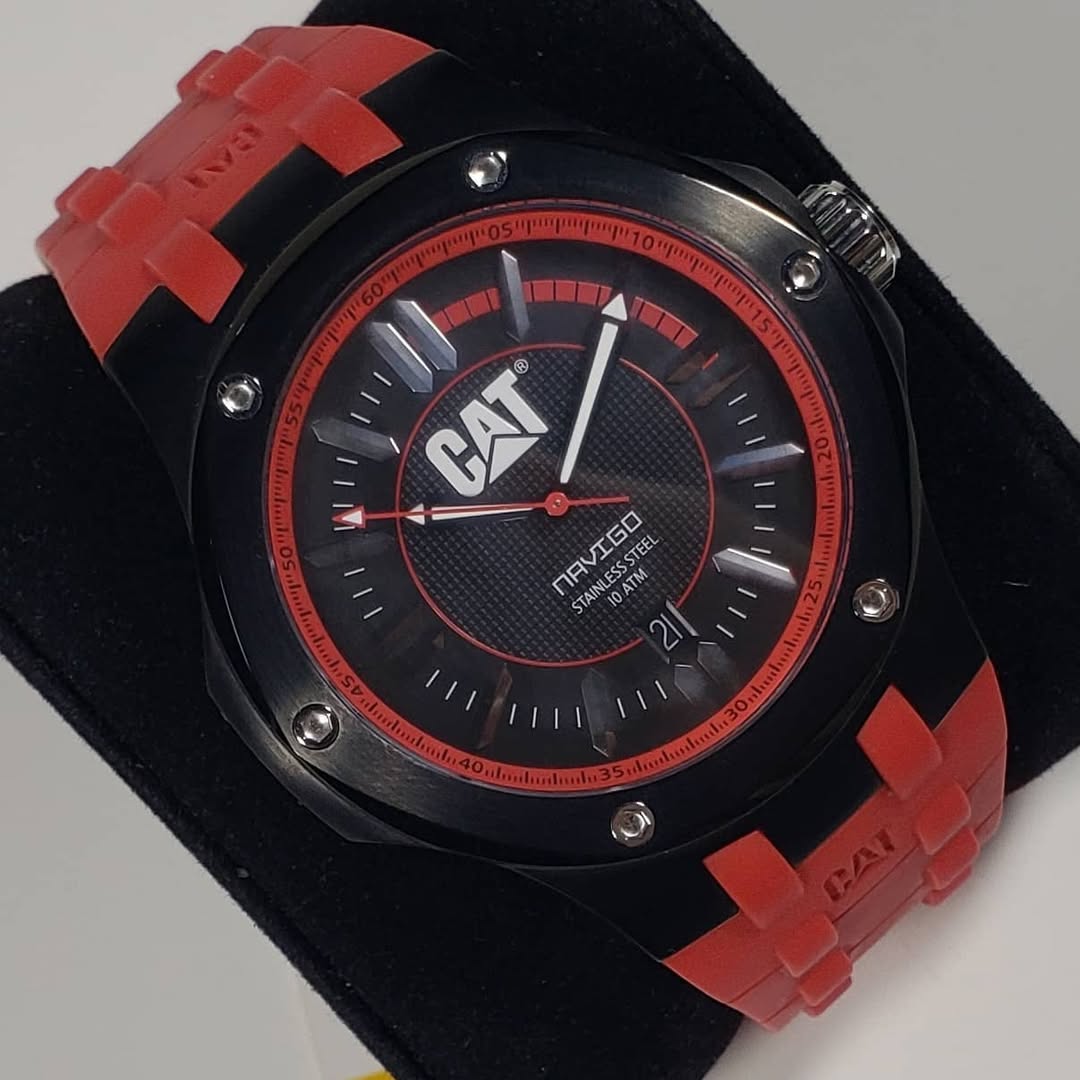 Audacia marítima en rojo vibrante. El CAT Caterpillar Navigo A1161-28128 12006 lleva el espíritu de exploración al siguiente nivel, combinando la resistencia legendaria de la marca con un diseño deportivo de altísimo impacto visual.