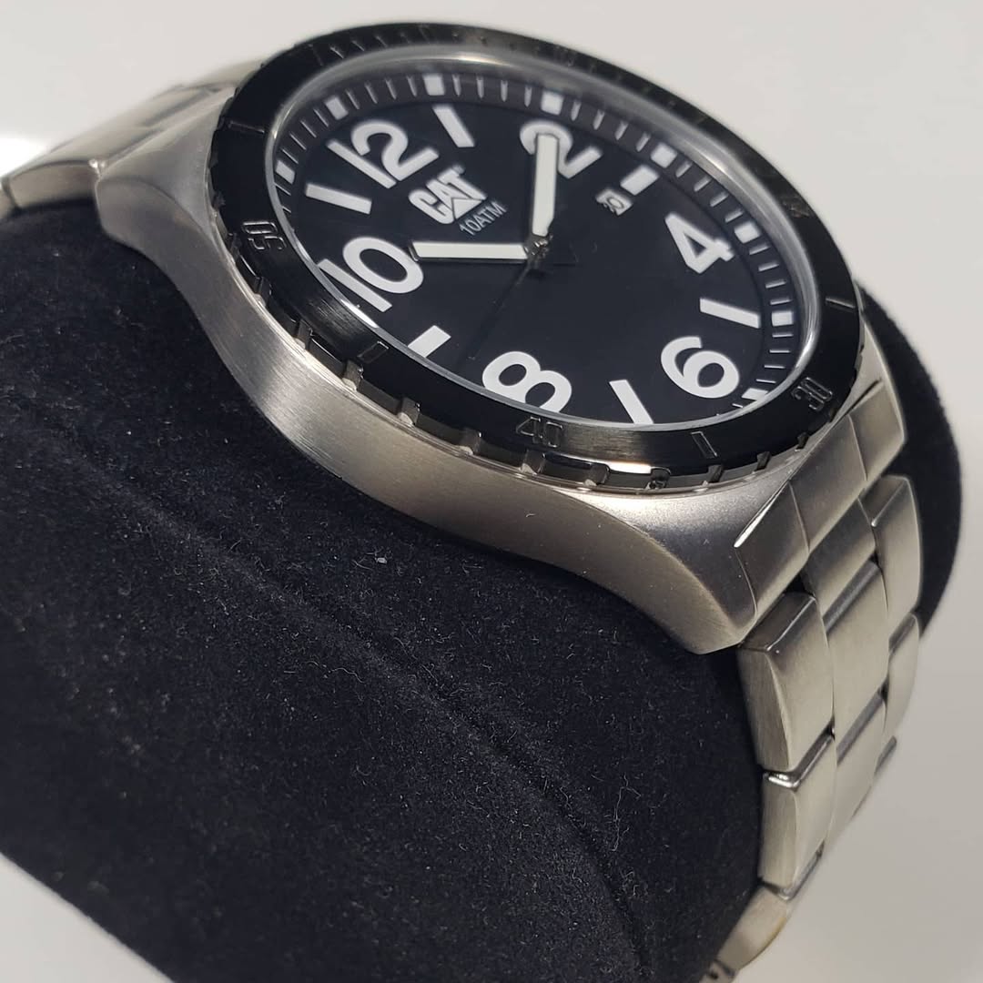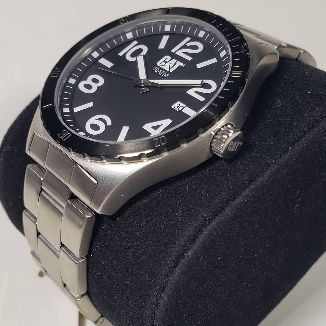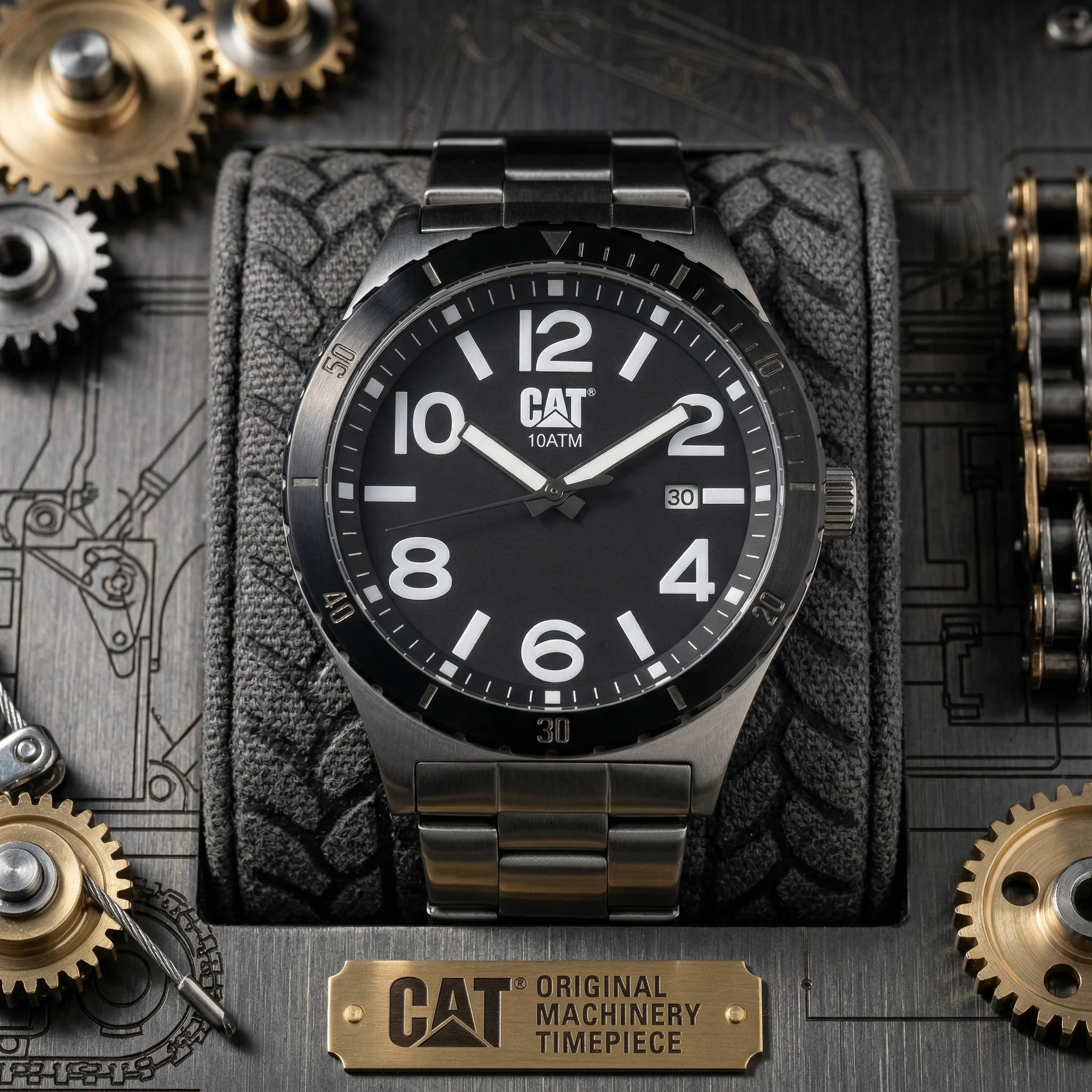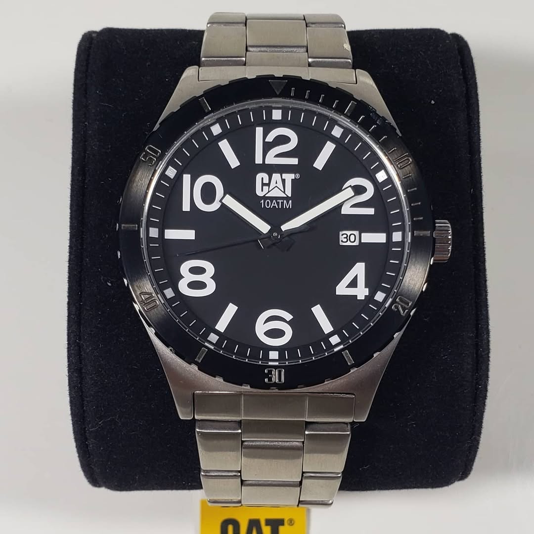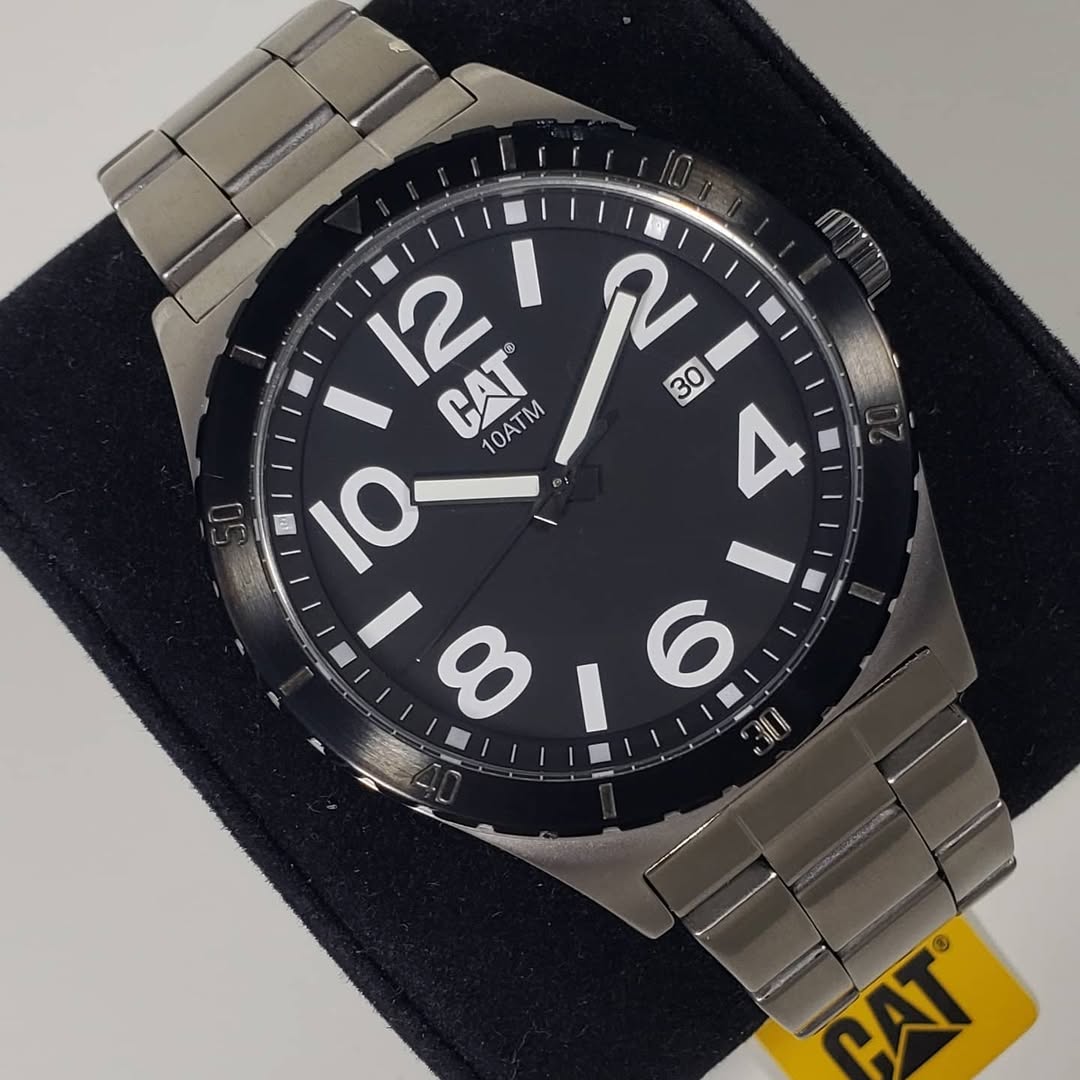 Cualquier dato relevante adicional: Pertenece a la serie NI241. Es la variante de esfera negra que ofrece un aspecto más técnico y sobrio que su contraparte blanca, manteniendo el enfoque en la claridad de lectura y la robustez. Presenta el logotipo «CAT» y la inscripción «10ATM» en la posición de las 12 en punto.