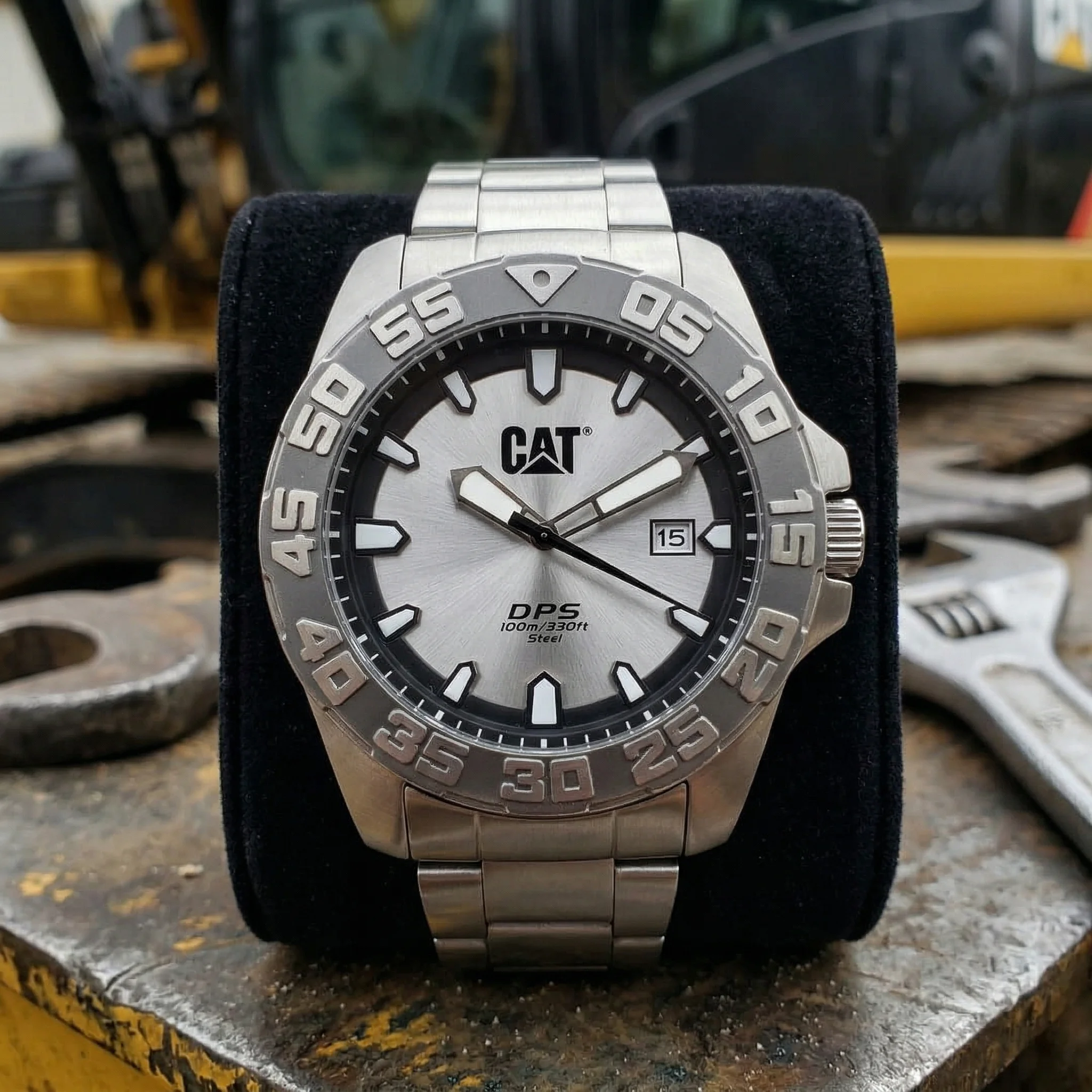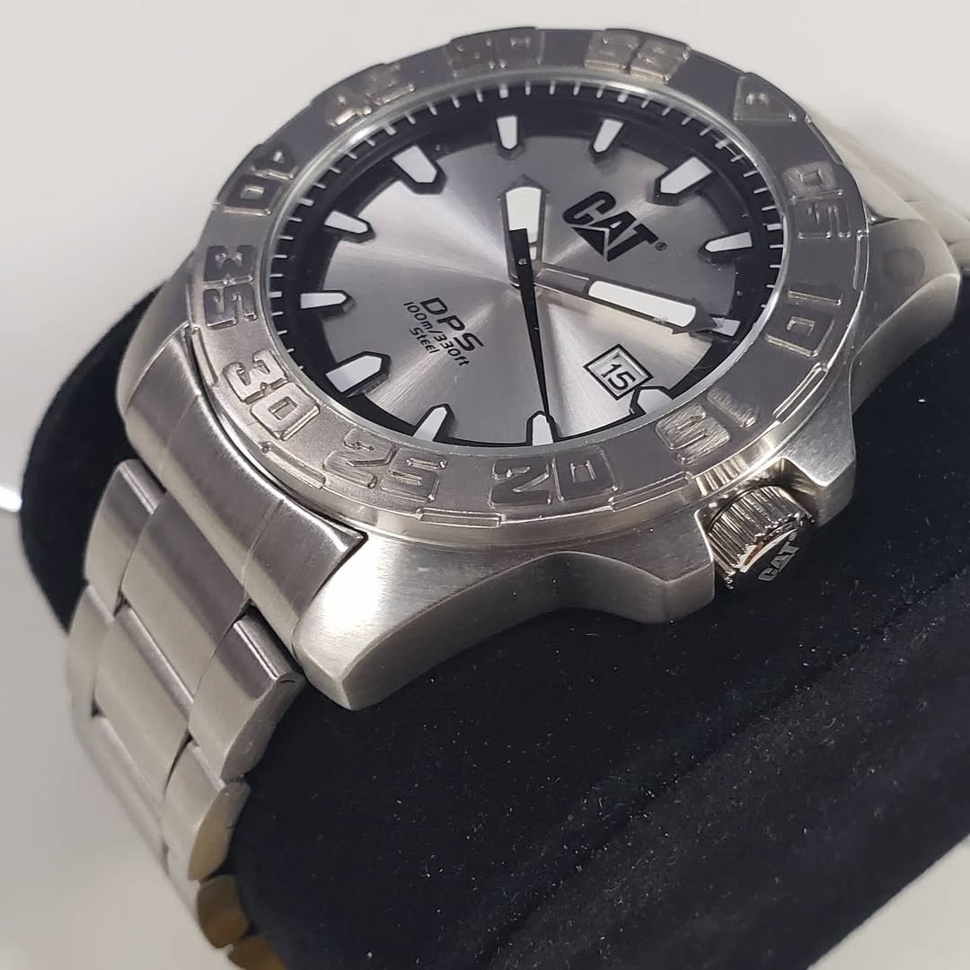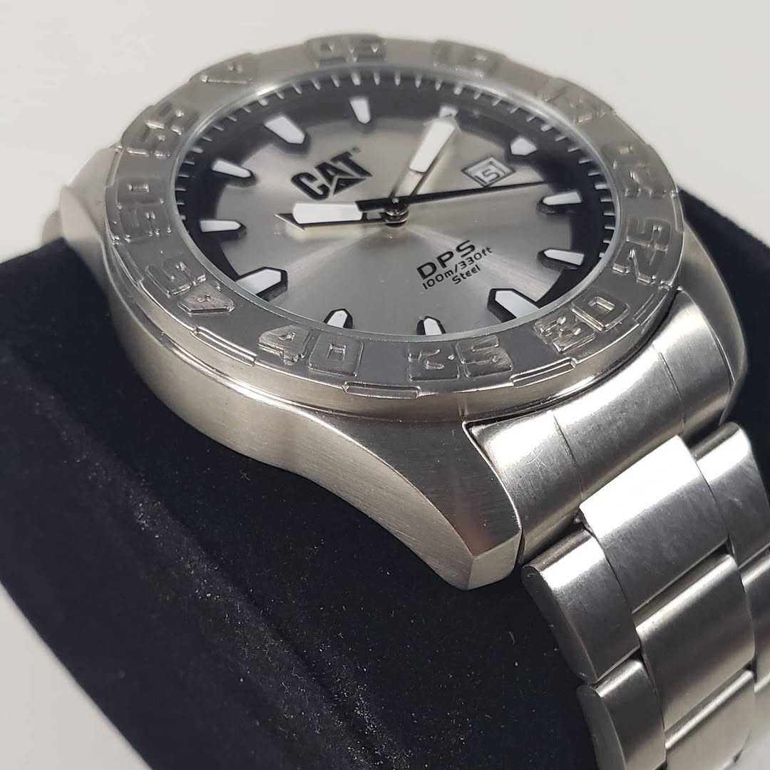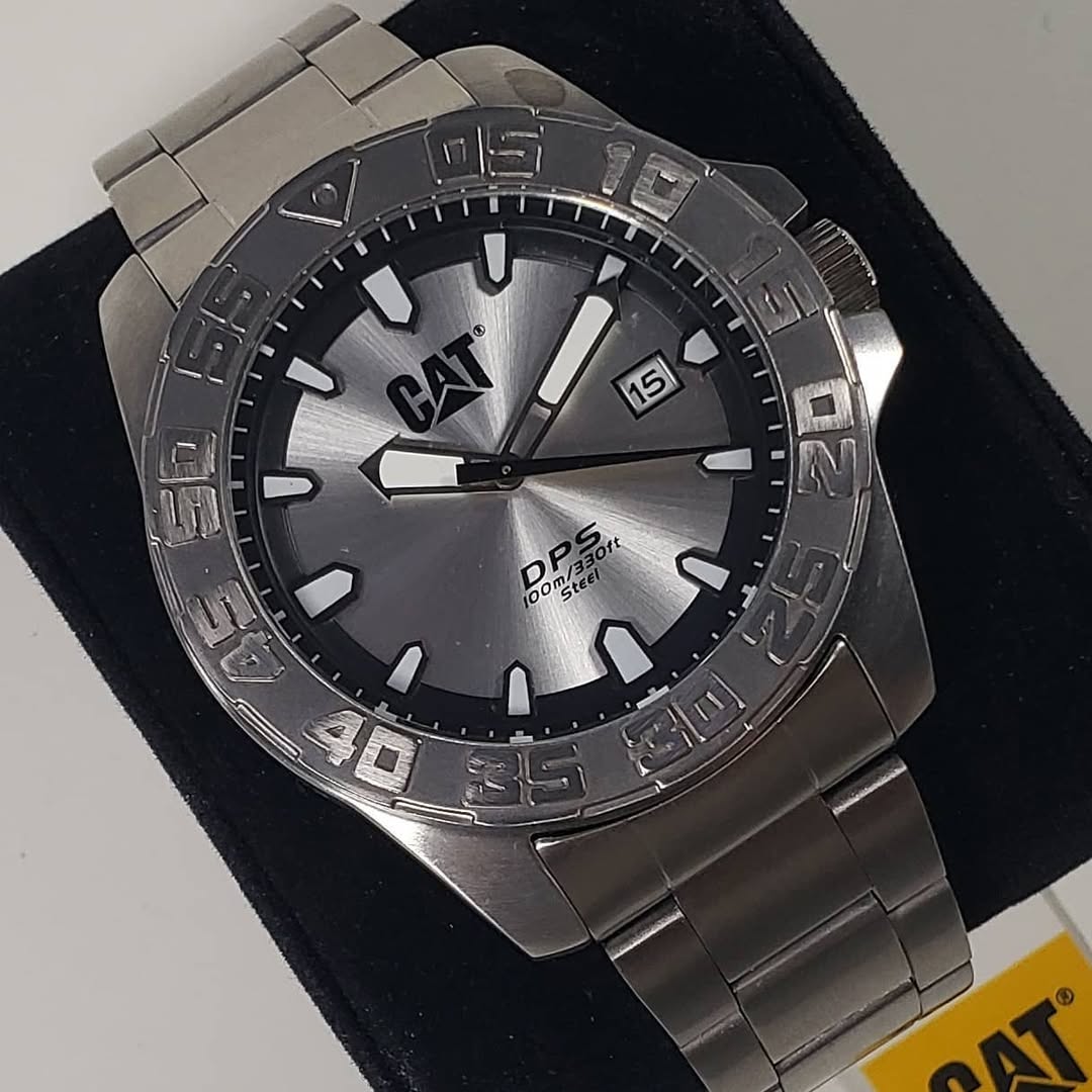 Hazlo tuyo: Es el accesorio definitivo para quien busca la durabilidad de una máquina CAT en un formato elegante y atemporal. Un blindaje metálico para tu muñeca que proyecta confianza y precisión en cada segundo.