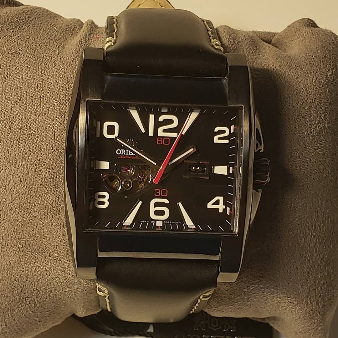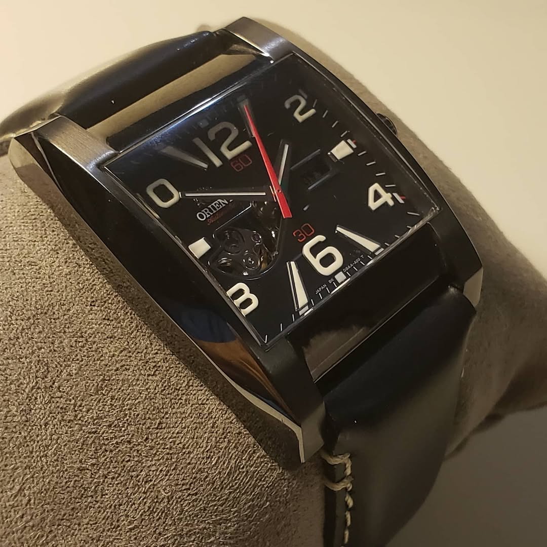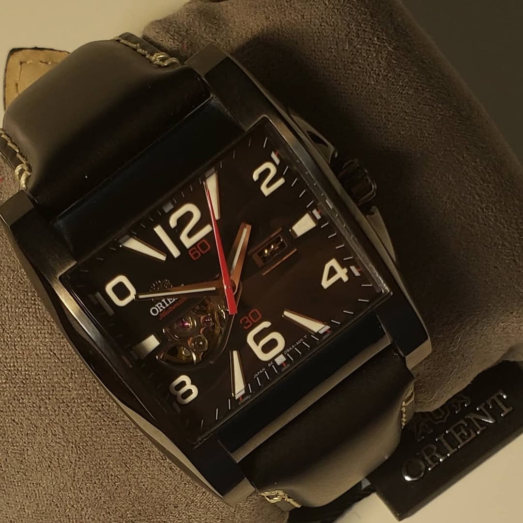 Sofisticación técnica y pulso mecánico. El Orient Automatic CDBAA003A0 7646 es el gemelo oscuro y moderno del modelo anterior, cambiando el romanticismo por una estética «Tech-Noir» que destaca por su geometría imponente y su acabado en gris plomo.