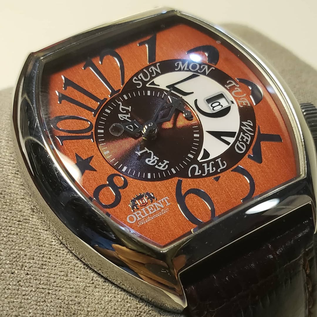 • Cualquier dato relevante adicional: Pertenece al modelo CESAC004T0. El diseño destaca por su asimetría armoniosa y el uso de una caja tonneau que evoca la elegancia de principios del siglo XX. El logotipo de Orient se ubica a las 9 en punto, rompiendo con la disposición tradicional y enfatizando su diseño único.