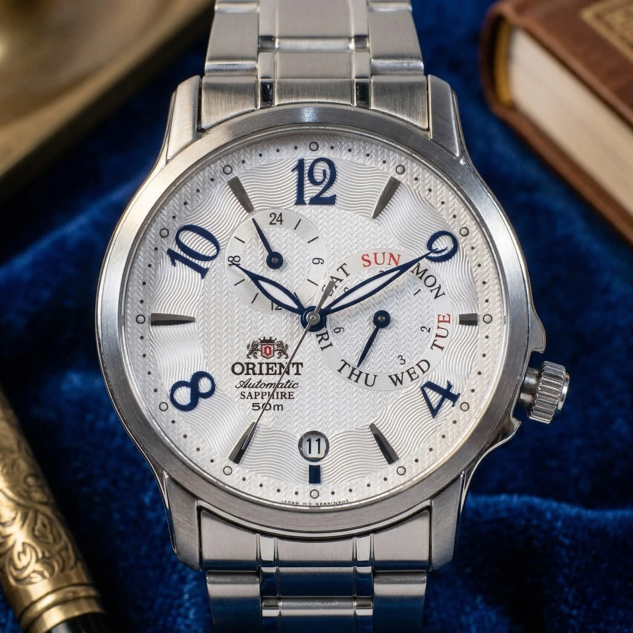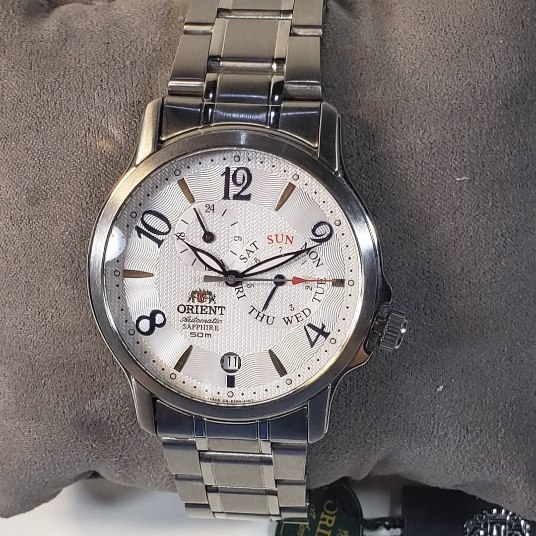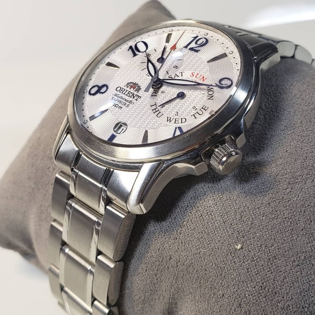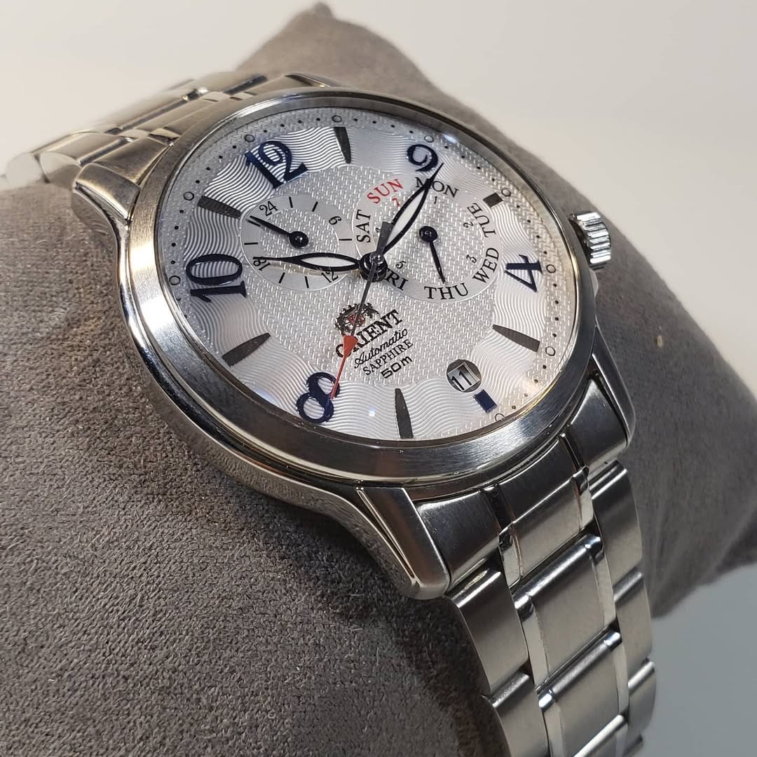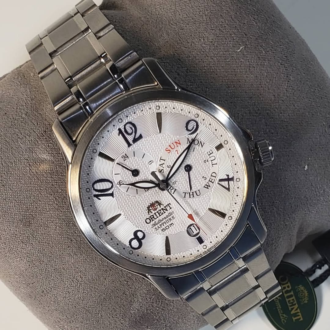 Dato curioso: Este modelo es muy apreciado por coleccionistas que buscan una estética similar a los relojes suizos de gama alta, pero con la robustez y el precio accesible de Orient. La complicación del día mediante aguja (en lugar de ventana) le otorga un aire de «instrumento de precisión» muy valorado.