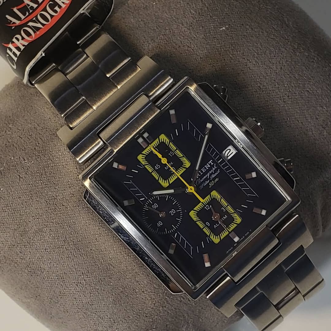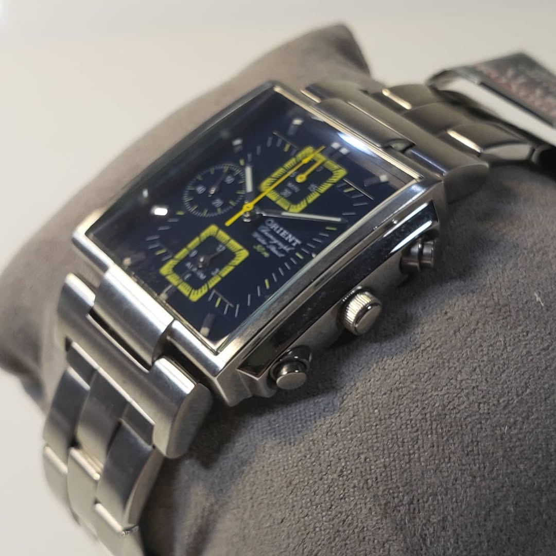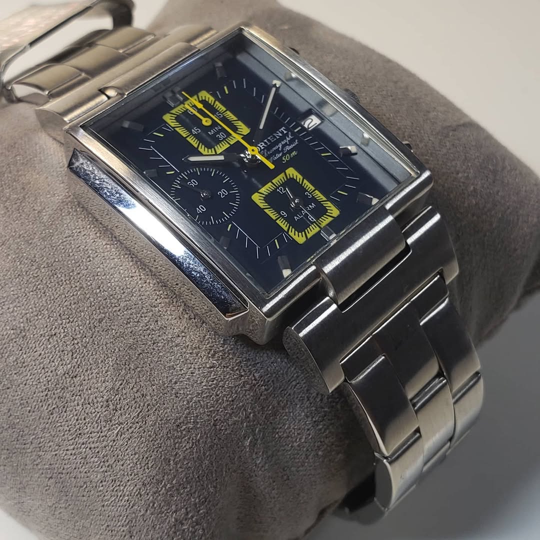 El Orient Chronograph CTDAB001DO 6503 es una pieza que desafía las convenciones, combinando la complejidad de un cronógrafo deportivo con la elegancia arquitectónica de una caja rectangular. Es el reloj ideal para quienes buscan una estética «retro-futurista» con un nivel de detalle excepcional.