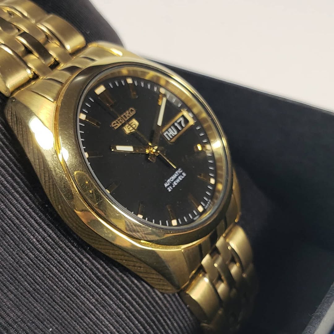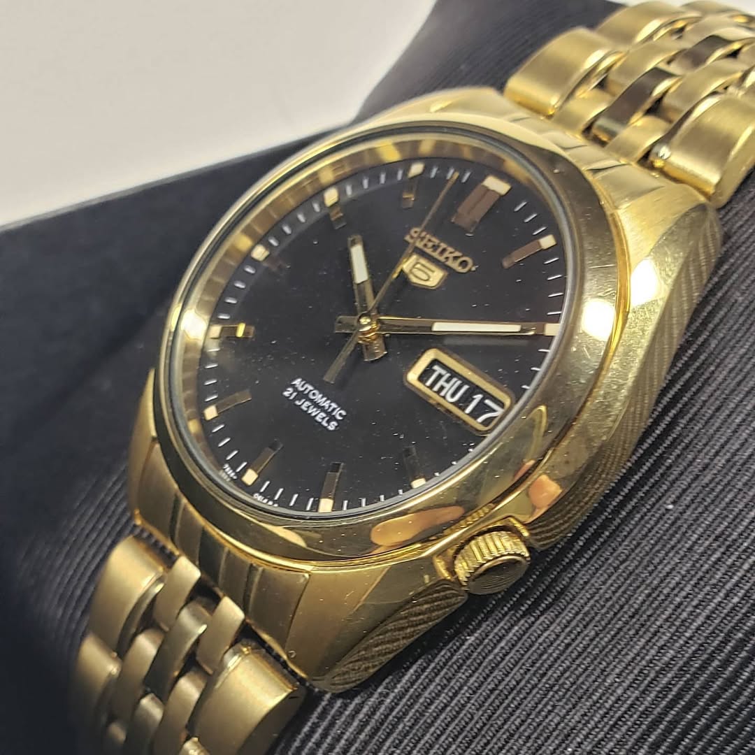 Hazlo tuyo: Es el accesorio definitivo para el hombre que prefiere que su estilo hable por él sin necesidad de estridencias. El SNK368 es un «traje a medida» para tu muñeca, una pieza que equilibra perfectamente la autoridad del oro con la sobriedad del negro.