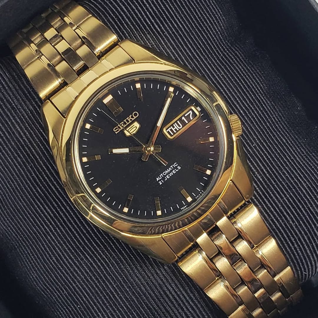 El Seiko 5 SNK368 (Ref. 7126) es la evolución minimalista del contraste «Black & Gold». Si los modelos anteriores buscaban la distinción a través de números romanos, el SNK368 apuesta por la pureza de las líneas, convirtiéndose en un diseño más limpio, moderno y extremadamente versátil para el día a día ejecutivo.