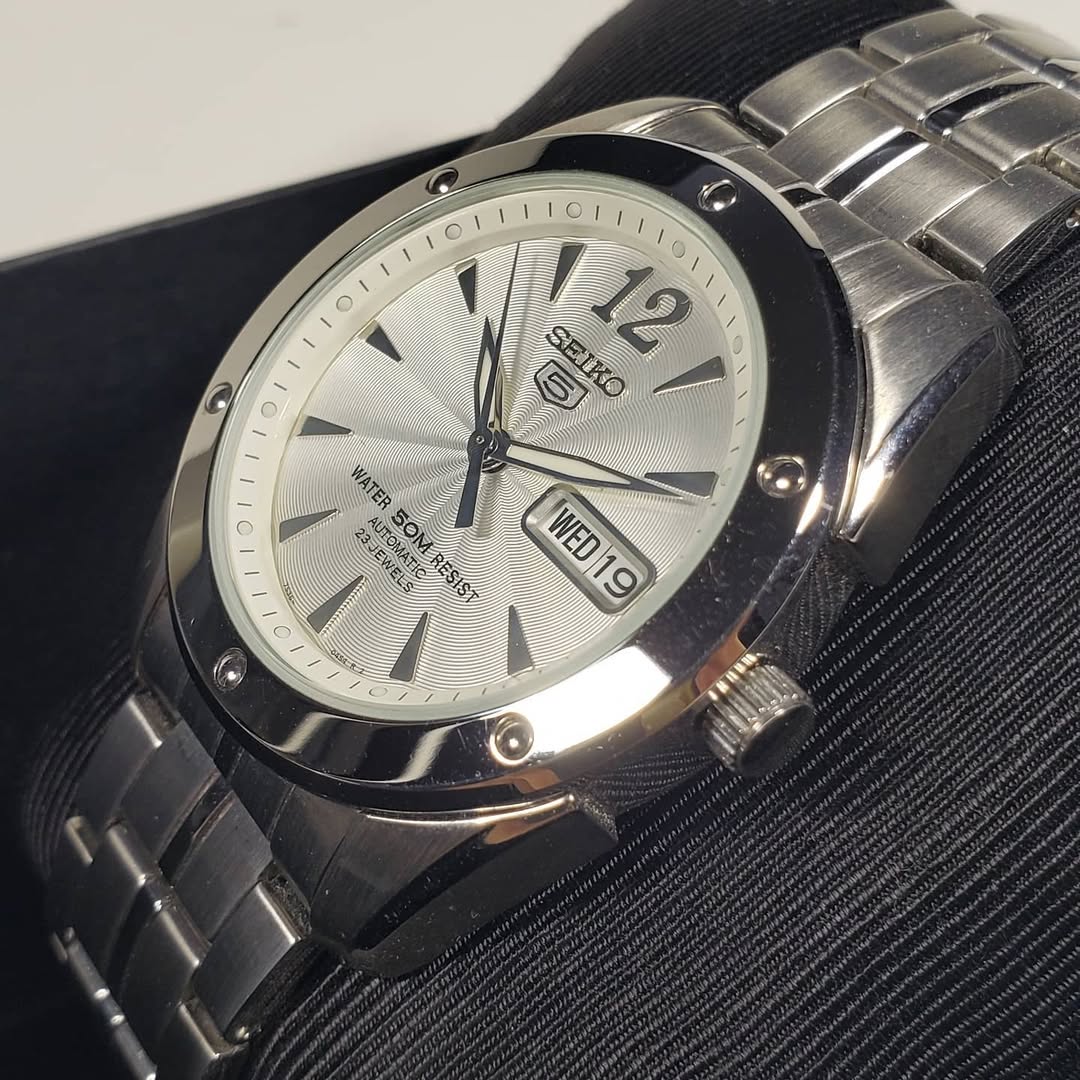 Bisel de Diseño Robusto: Lo más llamativo de este modelo es su bisel de acero con tornillos decorativos expuestos. Este detalle le otorga un look arquitectónico y técnico, evocando la estética de los relojes de lujo deportivos más icónicos, pero manteniendo la esencia accesible y duradera de Seiko.