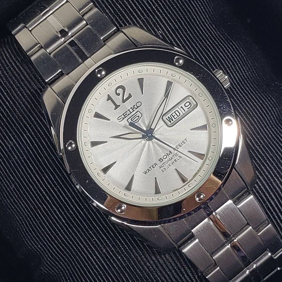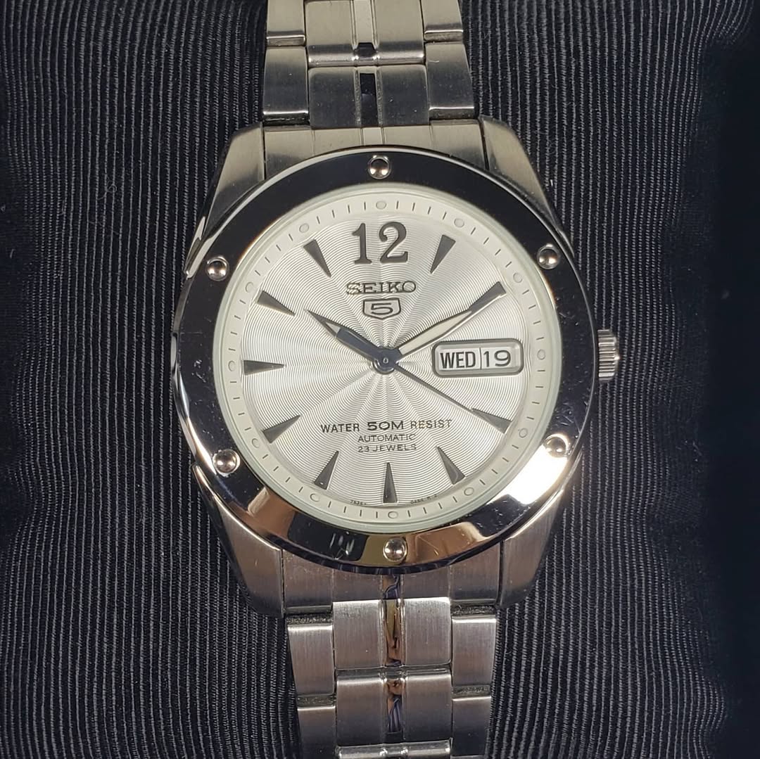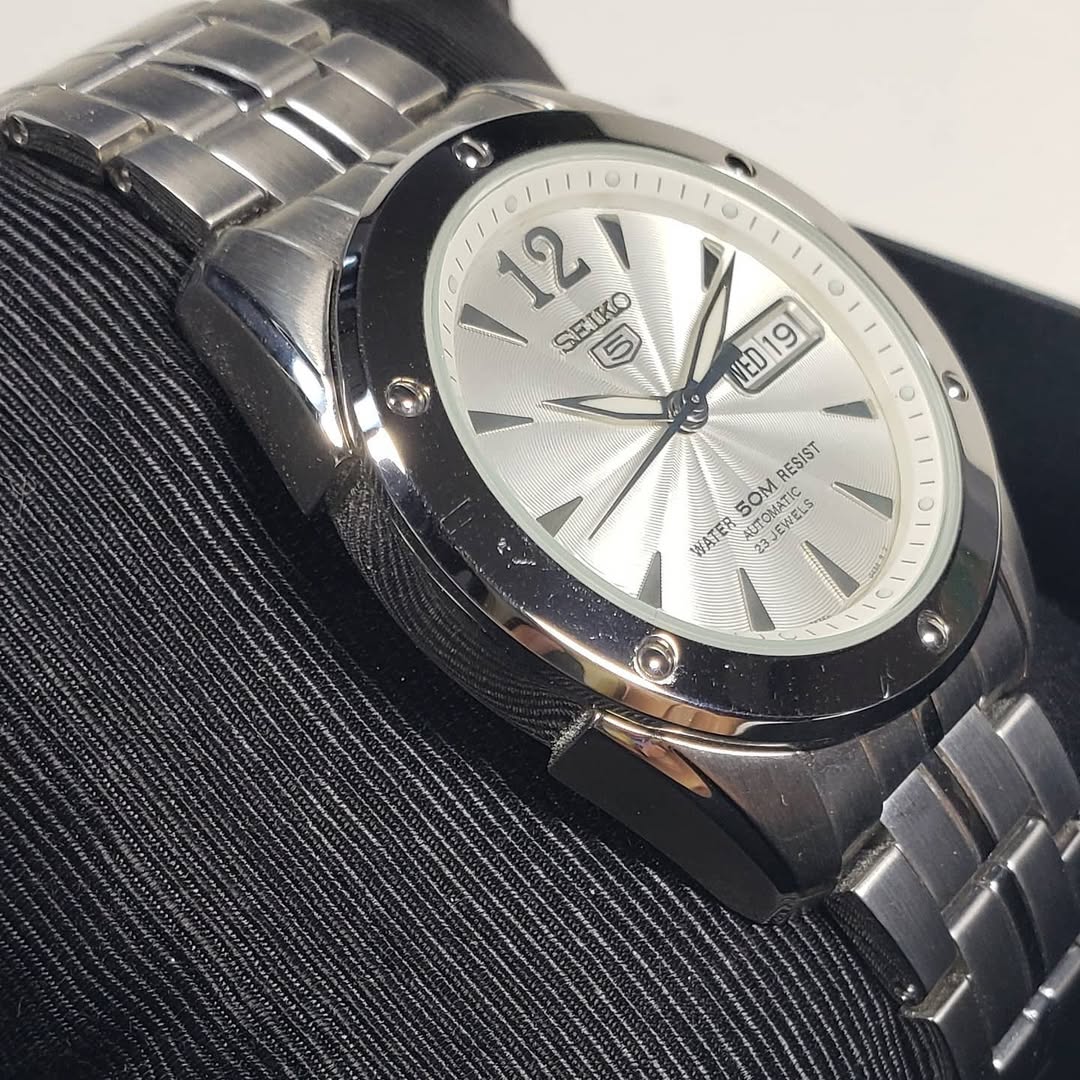 El SNZF41 es un modelo con una personalidad única dentro de la familia Seiko 5. Su rasgo más distintivo es su bisel con remaches, que le otorga un aspecto técnico y mecánico, evocando la estética de un volante de carreras o un tablero de instrumentos de alta precisión. Es el reloj ideal para quienes buscan una pieza «Sport» con presencia física contundente, pero que mantenga la elegancia necesaria para el uso diario en entornos urbanos.