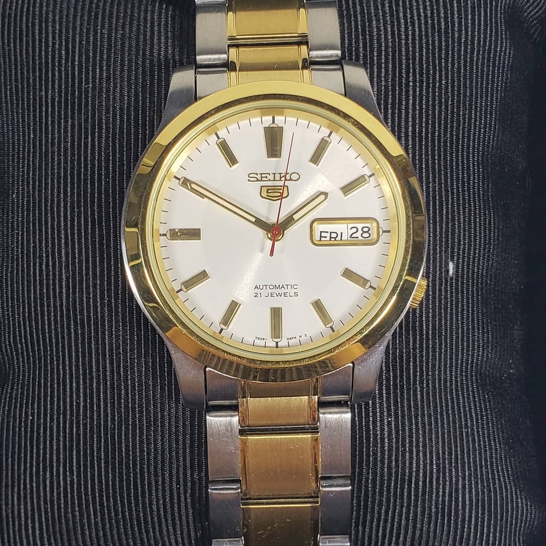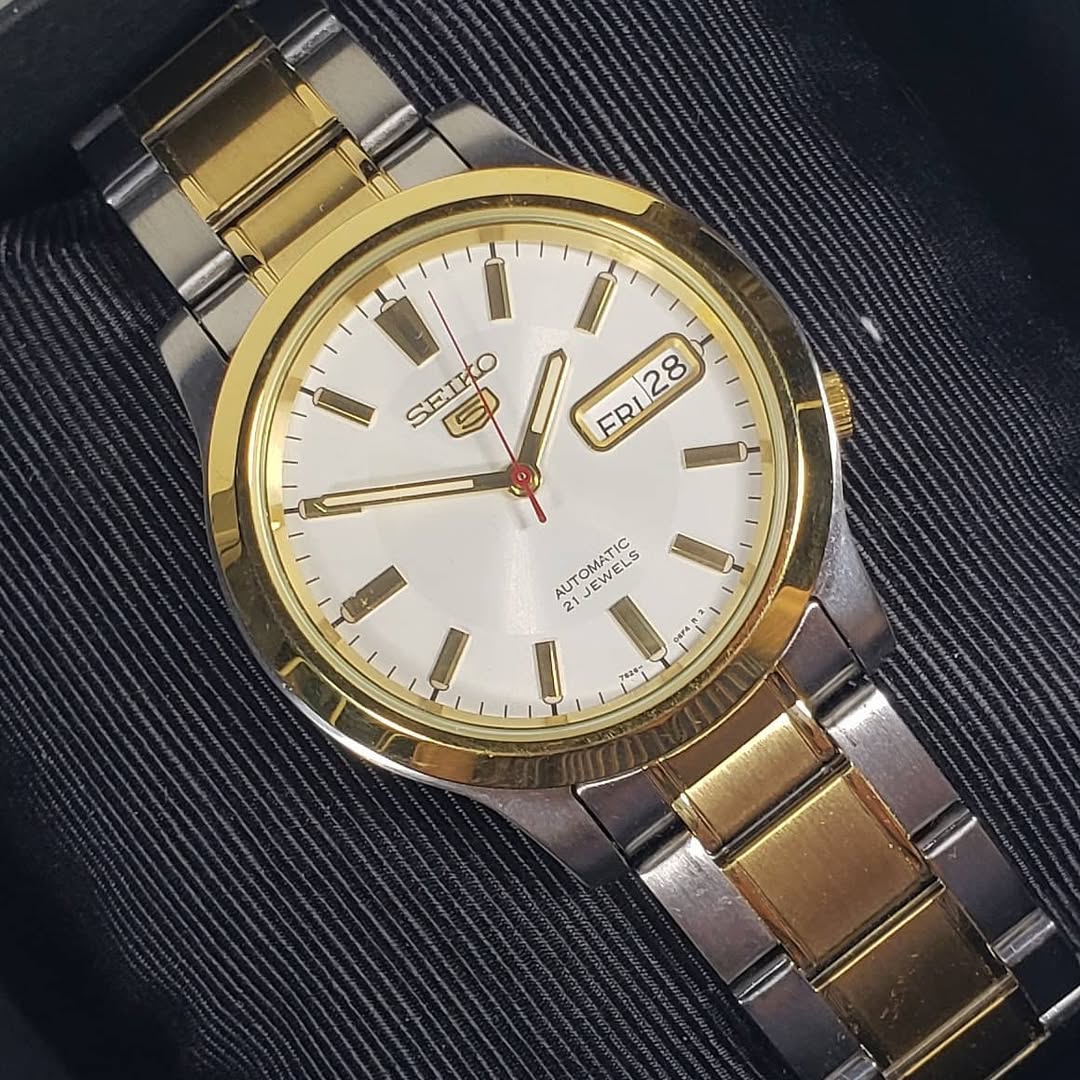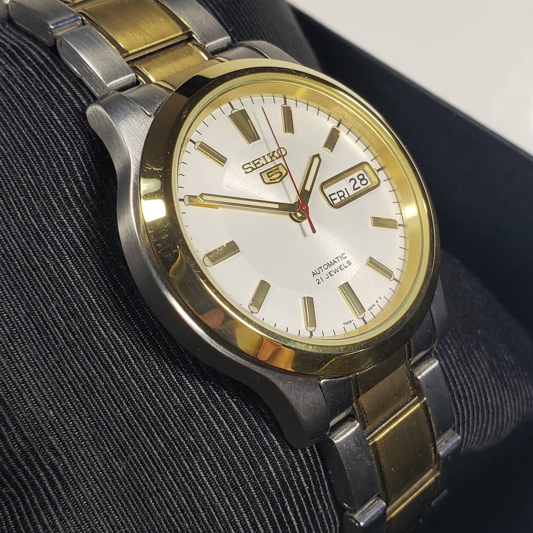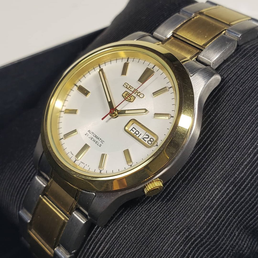 El Veredicto Técnico: El SNK790 es una pieza curiosa y muy valorada. A menudo se le llama el «reloj de ingeniero» dentro de los bitonos de Seiko 5 por su esfera blanca tan legible y ese segundero rojo que parece sacado de un panel de instrumentos. Es una de las mejores formas de llevar un reloj de dos tonos sin que parezca un reloj «de abuelo».